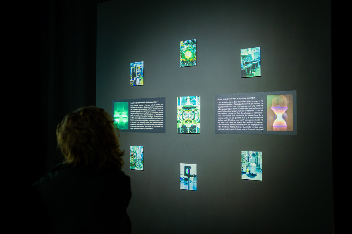Le parcours d’exposition est une invitation à suivre des fragments mémoriels qui pourraient appartenir à chacun, et ainsi retrouver une part du cheminement expérimental de chercheurs à la pointe de la physique quantique.